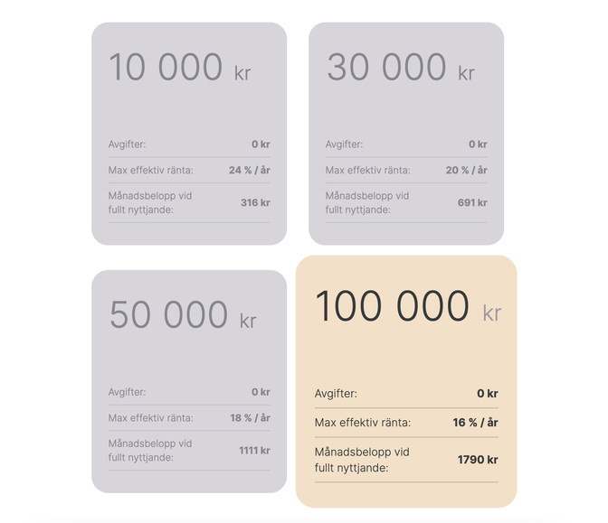 - Erbjuder kreditutrymme upp till 70 000 kronor