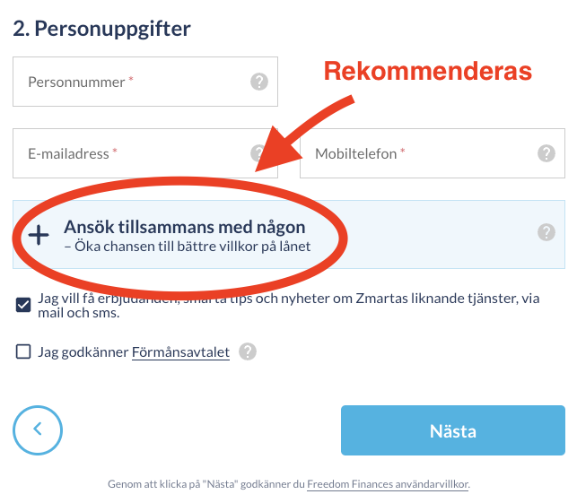 En till sökande på samma lån är inte minst fördelaktigt om du har en låg inkomst eller betalningsanmärkningar.