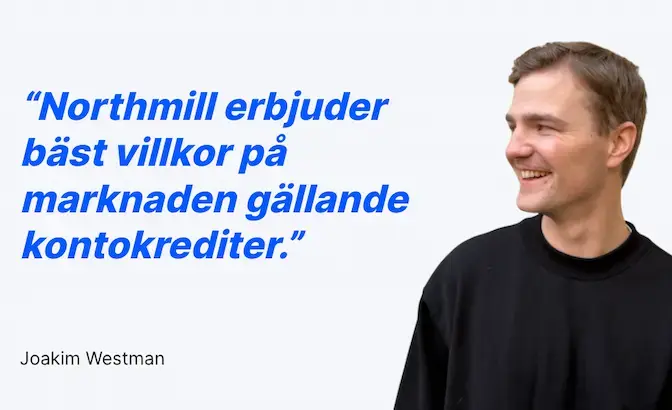 Du kan ansöka om en kontokredit på upp till 50 000 kronor hos Northmill. Du betalar endast ränta på det belopp du faktiskt använder från krediten.